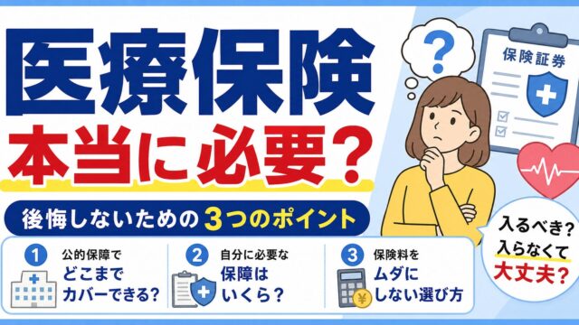 保険 医療保険は本当に必要?公的保険でどこまでカバーできるか|必要な人・不要な人を完全解説 かば 【PR】本記事はアフィリエイト広告を含みます。 「医療保険、なんとなく入ってるけど本当に必要なの?」 月々の保険料を払いながら、そう …
