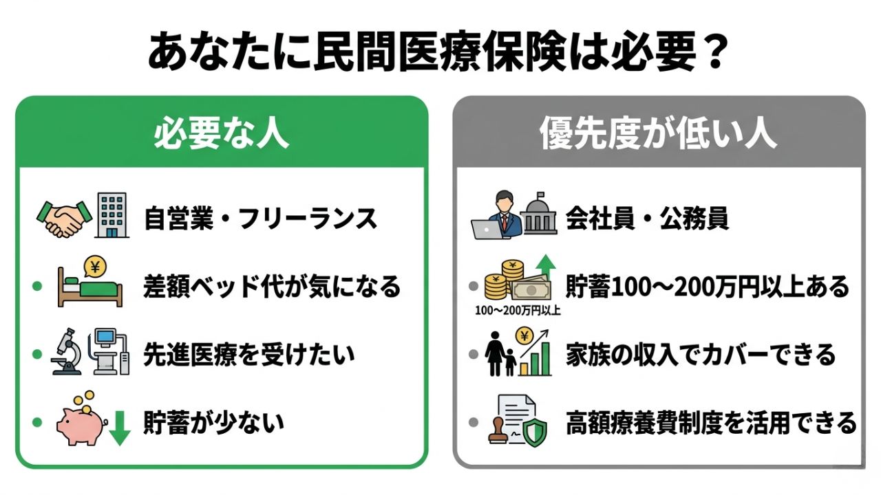 ▲ あなたに民間医療保険は必要?必要な人・優先度が低い人を比較